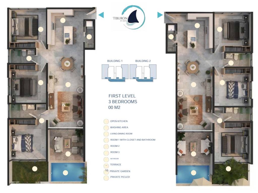 An exclusive residential complex located within Cocotal Golf & Country Club, one of the most prestigious gated communities in Bávaro – Punta Cana. The project consists of two three-story buildings with spectacular views of the 12th hole of the golf course.